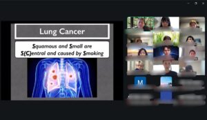その後で、胸水貯留時の病理所見や、腎臓病理の機序を学び、最後は肺癌に関わる表現と症状について英語で学びました。